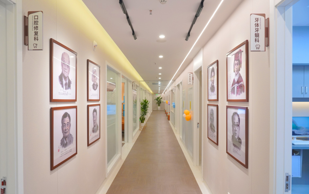 上午9时30分许,受邀嘉宾在院方工作人员的引领下开启了参观之旅,提前感受到兔博士口腔集团总院的专业实力与人文温度。简约大气的空间设计搭配柔和的色调,瞬间消解了传统医疗场景的紧张感。通道两侧国内国际口腔医疗行业的名人画像,讲述着口腔医疗的发展史。