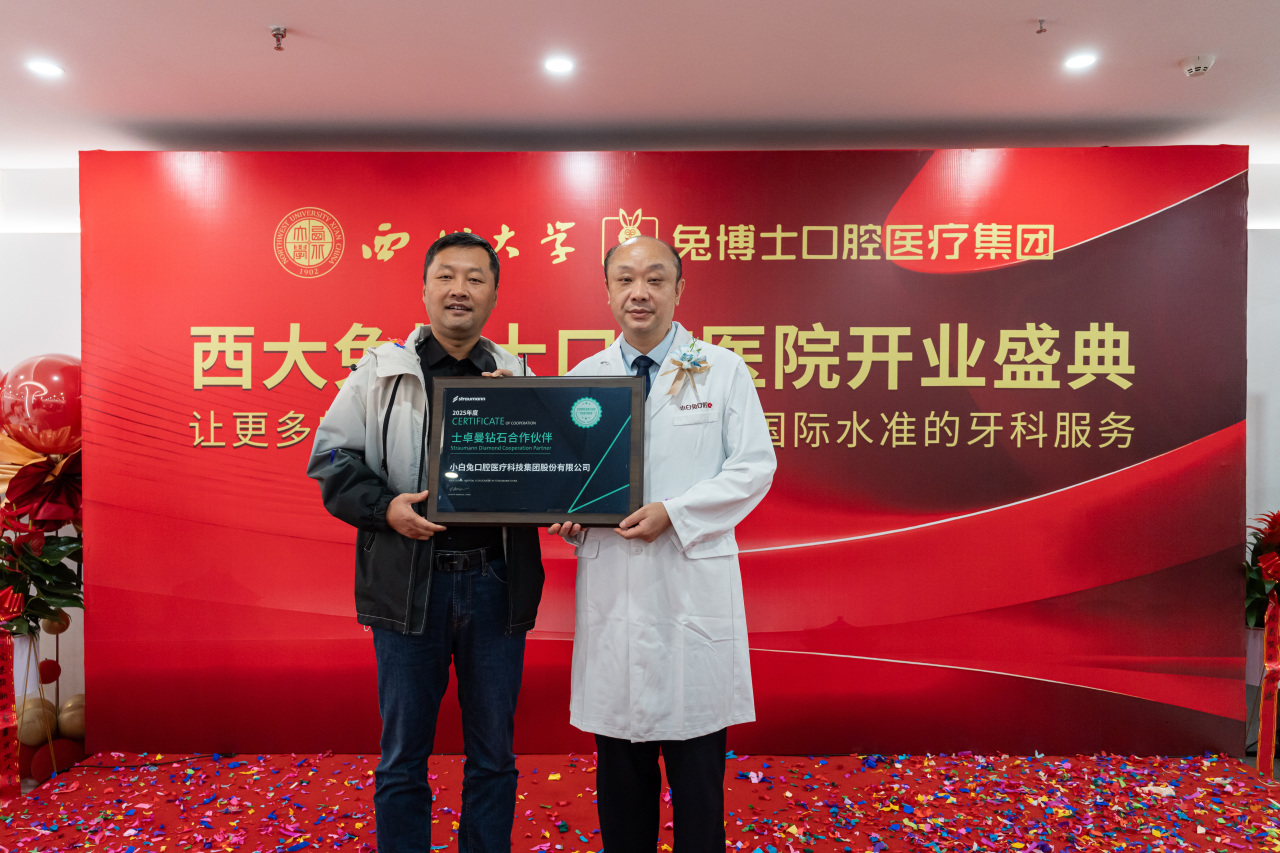 在授牌环节中,士卓曼西区大区经理崔鹏飞为兔博士口腔授牌,授予兔博士口腔“士卓曼钻石合作伙伴”。崔鹏飞在致辞中表示:士卓曼作为全球领先的种植牙品牌,七十多年来始终致力于口腔医学的创新与发展。我们倍感自豪地向兔博士口腔授予“士卓曼钻石合作伙伴”的荣誉。这不仅是对我们过去紧密合作的认可,更是对未来深度携手的美好期许。兔博士口腔“让更多的普通百姓也能享受到国际水准的牙科服务”的宗旨,与士卓曼“推动普及高端口腔医疗”的使命高度契合。我们相信,通过双方的努力,必将让国际先进的种植技术惠及更多民众,共同助力中国口腔健康事业的发展!